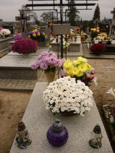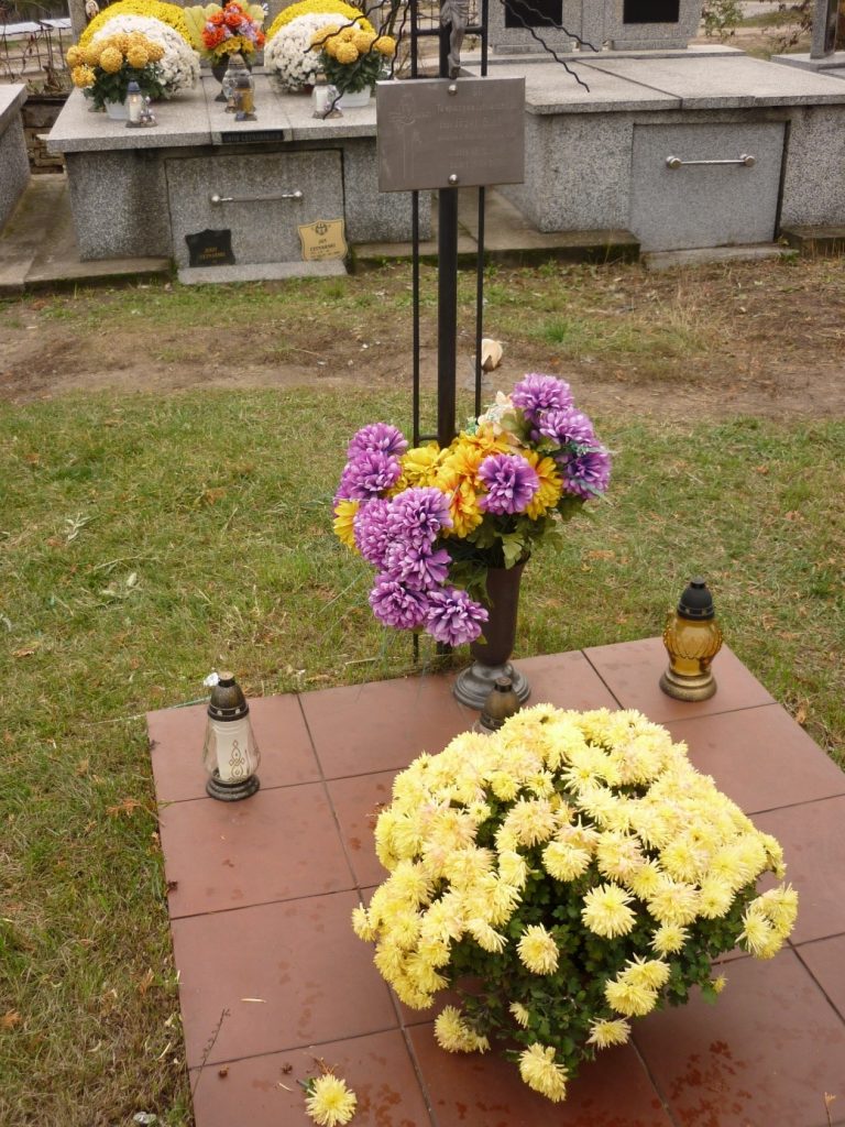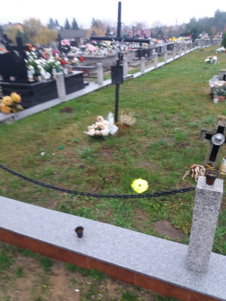 Obecnie został wymieniony krzyż na granitowy, wokół wysypano białym kamyczkiem, wsadzono krzewy.