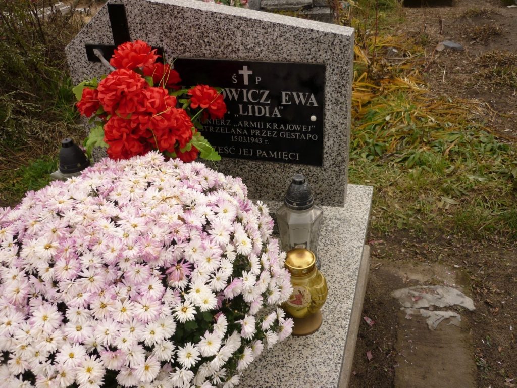 „ŁUTOWICZ EWA PS.”LIDIA” ŻOŁNIERZ „ARMII KRAJOWEJ” ROZSTRZELANA PRZEZ GESRTAPO 15.03.1943 r. CZEŚĆ JEJ PAMIĘCI”