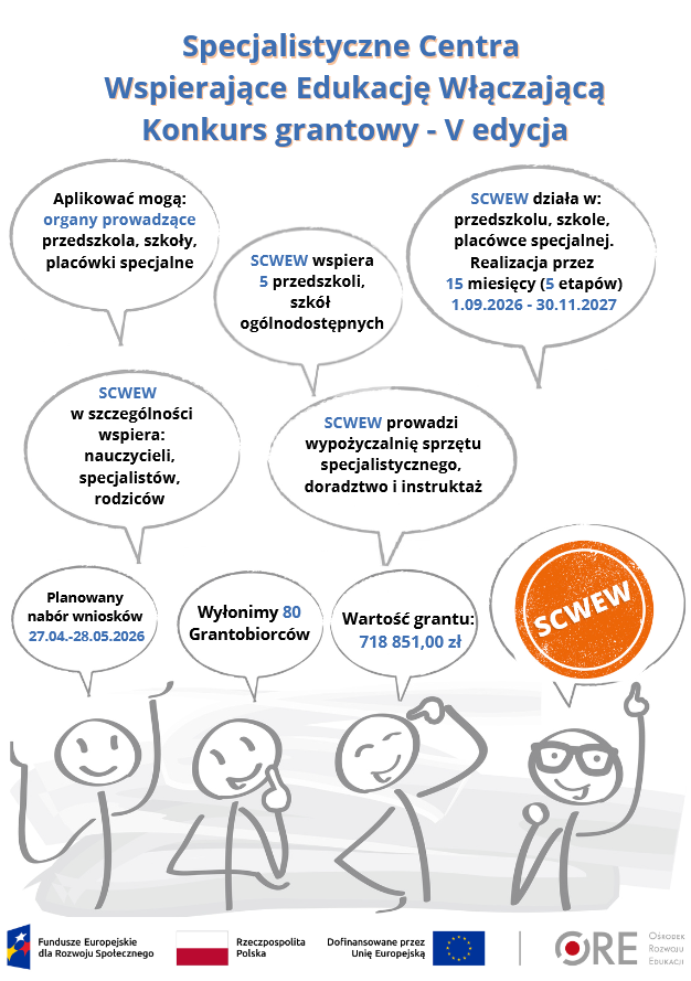 Informacja dotycząca naboru do V edycji konkursu grantowego w ramach projektu „Budowa skoordynowanego systemu pomocy specjalistycznej opartego na Specjalistycznych Centrach Wspierających Edukację Włączającą” (SCWEW).